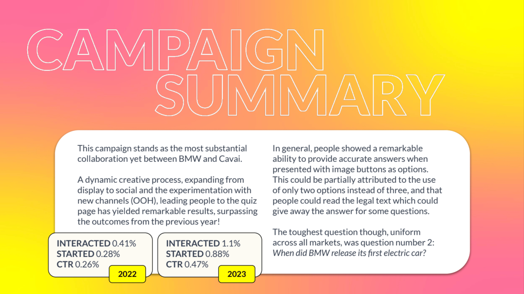BMW and Cavai developed seasonal quiz campaigns where users participated through interactive formats in exchange for entering the competition with their email.